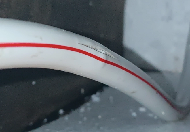 Поки я побіг зкручувати котел, коли повернувся, алюмінієва труба дала повздовжню тріщину, але при цьому не розірвалась: